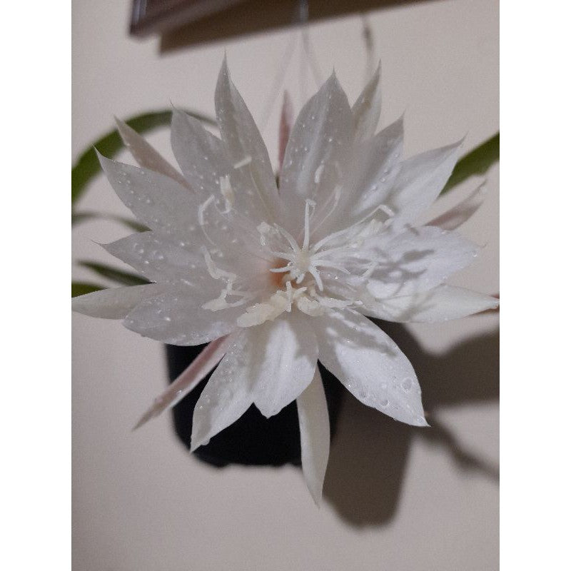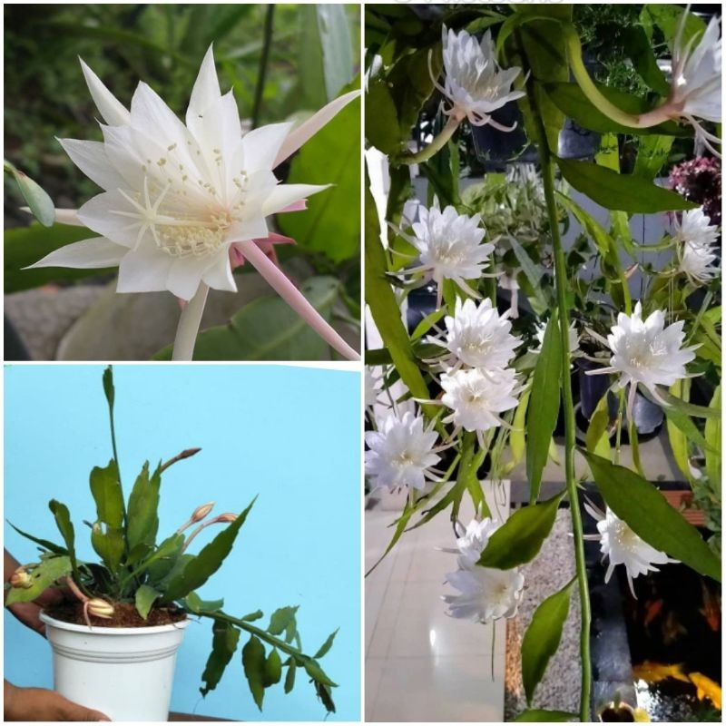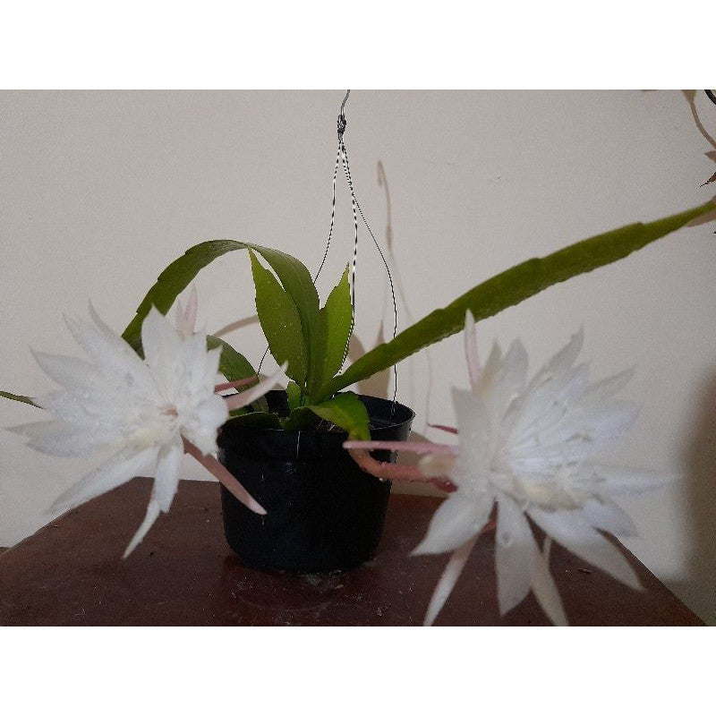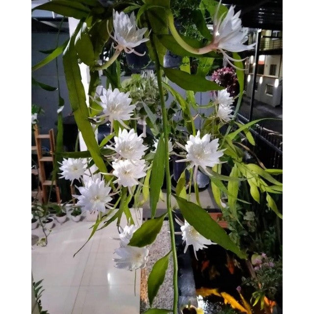 Experience the magic of the Queen of the Night Cactus (Wijaya Kusuma Putih) – a rare, elegant cactus that blooms only at night. Its large white flowers are super fragrant, pure white, and open beautifully after sunset, making it one of the most special ornamental plants in the world. This plant is perfect for hanging pots, balconies, pergolas, or as a climbing cactus on walls.