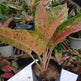 large, glossy leaves with stunning red and green patterns