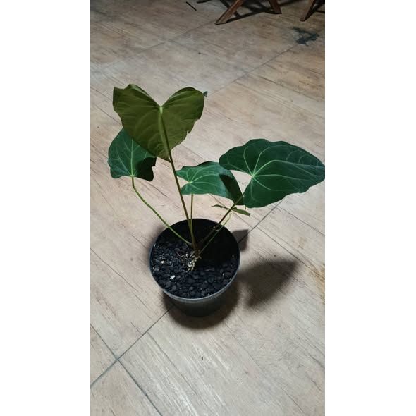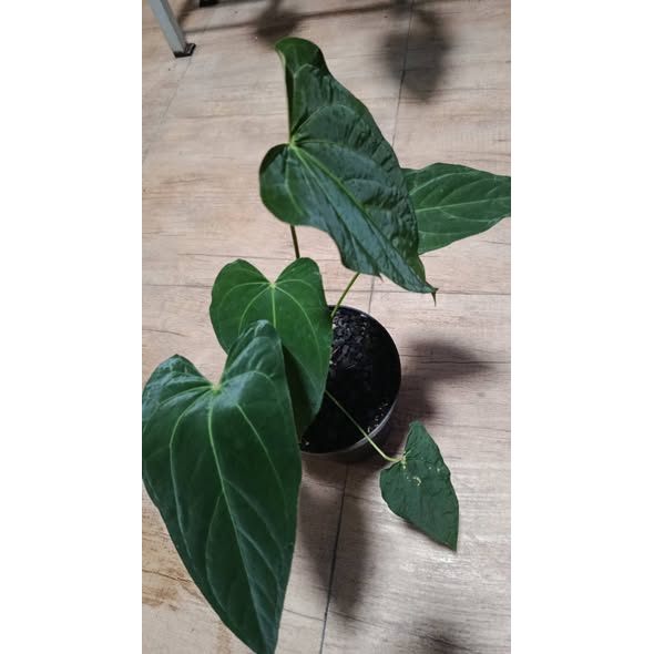 Anthurium papillilaminum Legend is a premium and highly sought-after aroid known for its large, velvety leaves with a deep dark green tone and prominent vein structure. This “Legend” form is prized for its superior leaf shape, thicker texture, and more intense coloration, giving it a luxurious and exotic appearance. Belonging to the Araceae family, it offers a bold yet elegant tropical aesthetic that stands out in any collection. With a height of approximately 40 cm, this plant is well-grown and suitable as a statement piece for indoor or shaded environments. It thrives in bright, indirect light with high humidity, well-draining media, and consistent moisture.