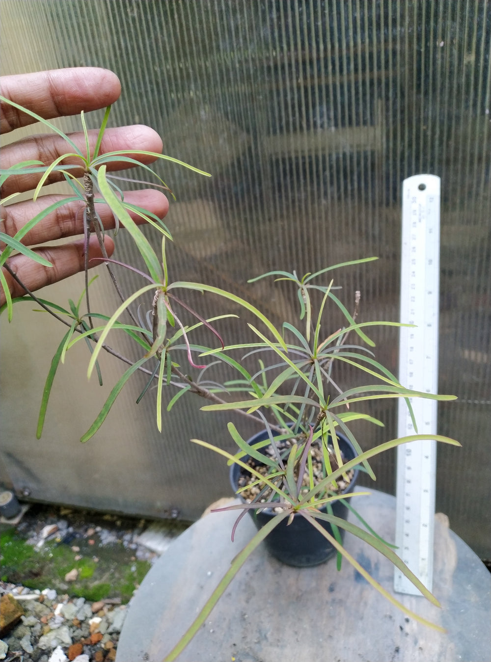 Euphorbia hedyotoides is a rare, slow-growing caudiciform succulent endemic to the dry, rocky forests of southwestern Madagascar. Known for its miniature, tree-like appearance, this species is highly popular in the bonsai community due to its woody, upright stems, and interesting root structures.
