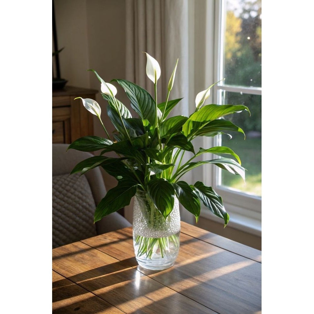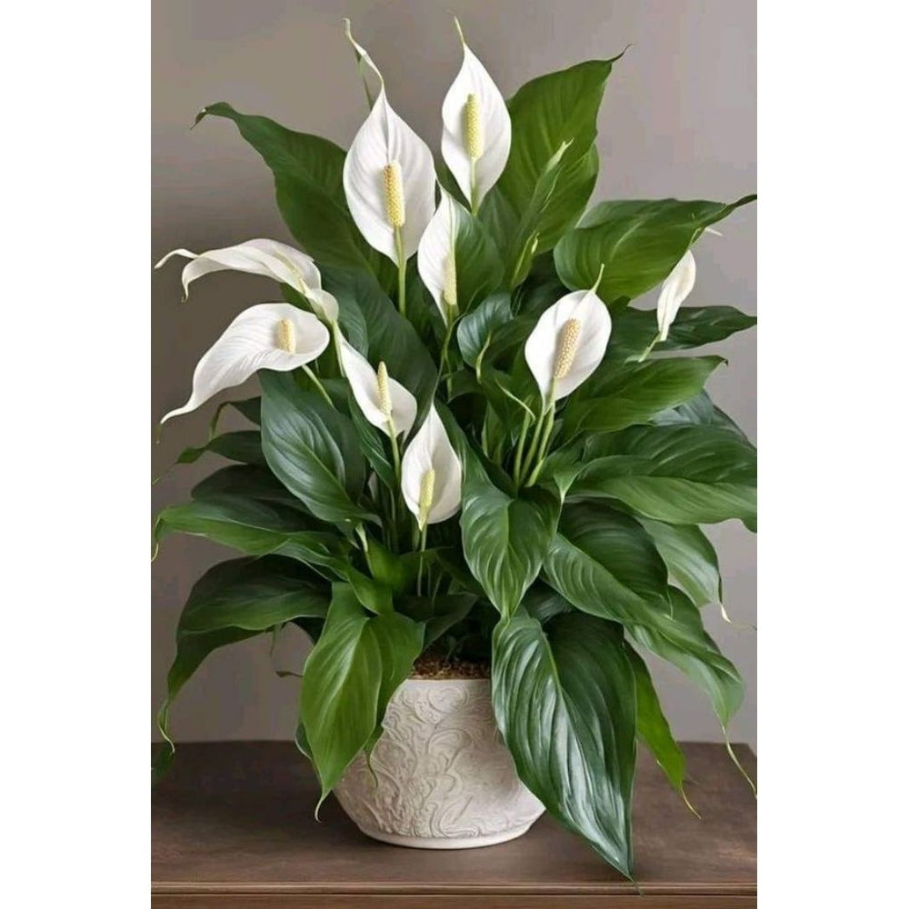 from the air. It’s perfect for homes, offices, or bedrooms where clean air and calm energy are needed. With its graceful shape and pure white flowers, the Peace Lily adds a touch of natural elegance to any interior space.