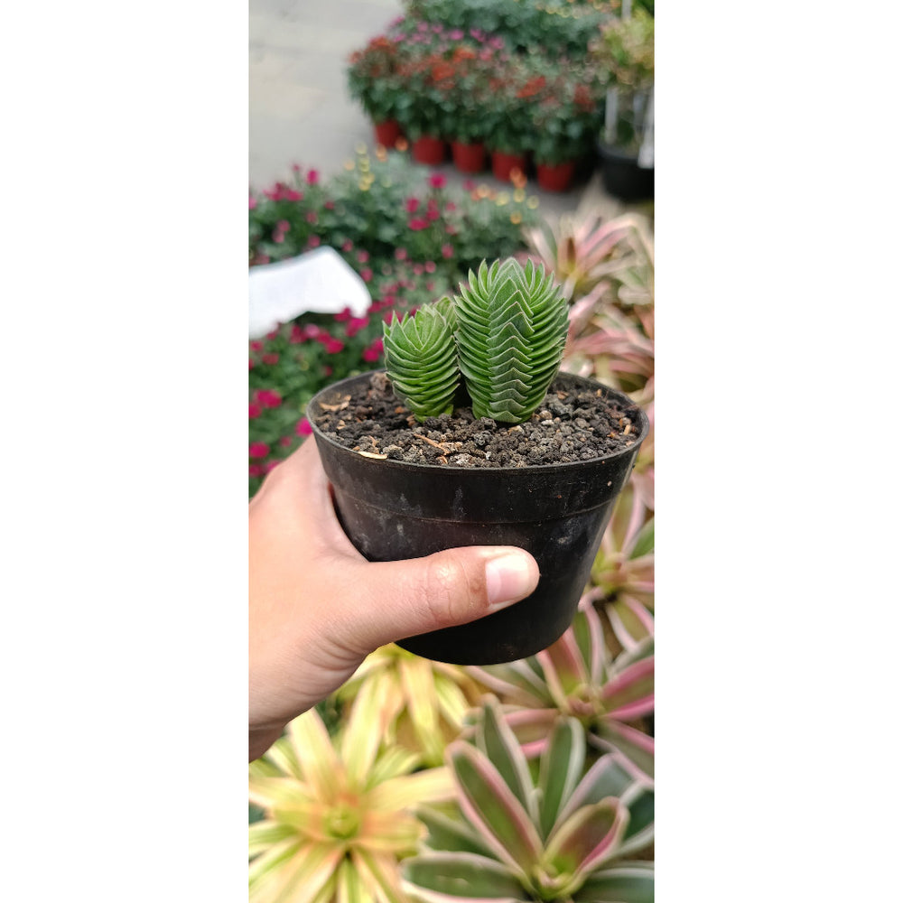 The Buddha Temple plant, scientifically known as Crassula Buddha, is a captivating succulent that boasts unique, stacked leaves resembling a serene temple. This intriguing plant is not only visually stunning but also known for its air-purifying qualities, making it a perfect addition to enhance the ambiance of your living space. Its compact size and unique shape make the Buddha Temple plant a delightful centerpiece or a charming accent on any shelf.