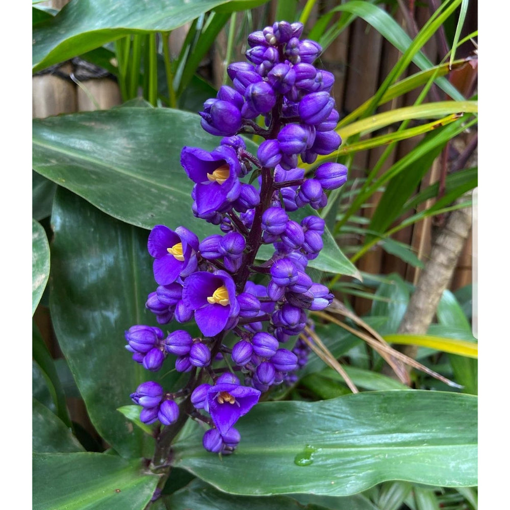 Dichorisandra Thyrsiflora, also known as Blue Ginger, Blue Flowering Bamboo, or Brazilian Ginger, is a beautiful tropical plant with bright blue flowers and lush green foliage. It can grow up to 1.5 metres tall and is perfect for adding a pop of colour to your garden or as a striking potted plant. Its unique flower spikes and bamboo-like stems make it a standout feature in any space.