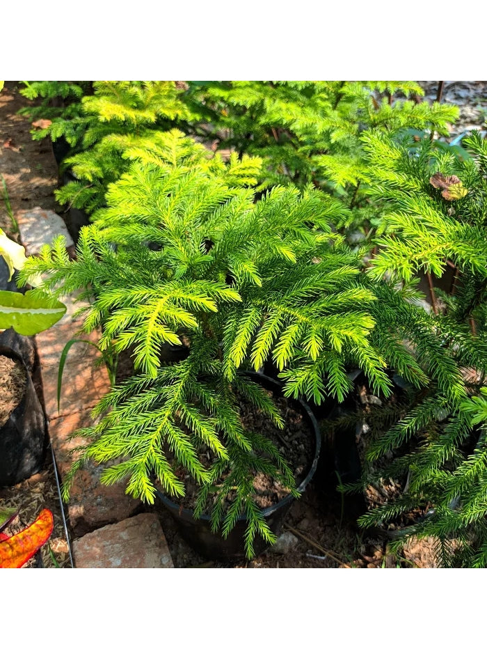 Introducing the Norfolk Island Pine, a majestic evergreen tree that brings nature's grace into your home. Known for its symmetrical and pyramid-shaped form, the Norfolk Island Pine (Araucaria heterophylla) adds a touch of elegance to any indoor or outdoor space. With its soft, feathery foliage and sturdy branches, this tree resembles a miniature Christmas tree all year round. Its resilience and adaptability make it a popular choice for gardening enthusiasts seeking to enhance their living spaces with a touch of natural beauty.