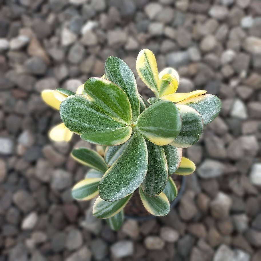 The Variegated Jade Plant (Crassula Ovata Variegated) is a beautiful and hardy succulent with thick, fleshy leaves featuring creamy-white and green variegation, sometimes tinged with pink edges under bright sunlight. This slow-growing plant forms a compact, tree-like shape and can reach up to 1 meter tall, making it perfect for both indoor and outdoor gardens. It is known as a symbol of prosperity and good luck, making it a popular choice among plant lovers.